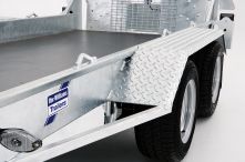 GH106BT maskintraileren leveres med ekstra robust og forstærket rampe, og så har den 2 aksler. Har du brug for en maskintrailer med større lad vil vi anbefale dig at se på vores bestseller GH126BT eller GH146BT.